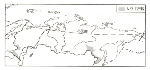 (云南中考)大豆喜温、需水较多,广泛用于食品加工工业。近年来,俄罗斯大豆种植面积和产量大幅度增长,同时,大豆进口量和出口量也在持续增加,形成西部地区进口、东部地区出口的国际贸易格局。读俄罗斯大豆主产区分布示意图,回答16~17题。