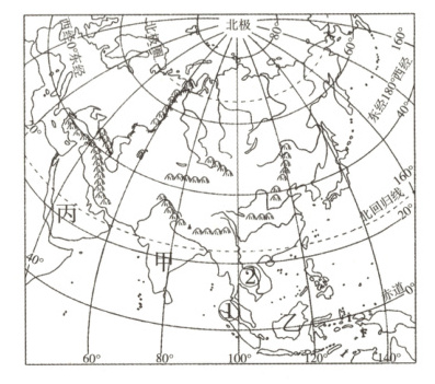 B. 图中丙为阿拉伯半岛,该半岛季风气候显著