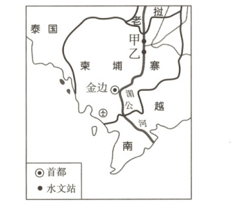 (2) 就流量大小而言,乙水文站观测到的流量比甲水文站______。结合所学知识及图文信息,推断湄公河在柬埔寨发展中的作用有______________________________。