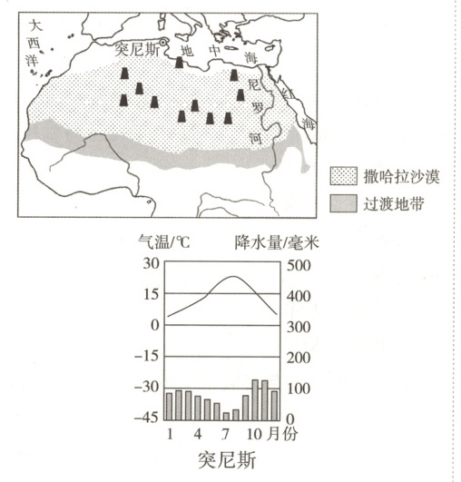 撒哈拉沙漠南缘是热带沙漠与热带草原的过渡地带(如图所示)。随着人口的急剧增加,促使过渡地带以南的旱作农业区不断向北推进,侵入草原牧区。