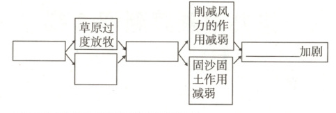 (2)依据材料二,将下列选项的序号填入相应的方框内,以反映农牧之争导致环境问题的发生过程。