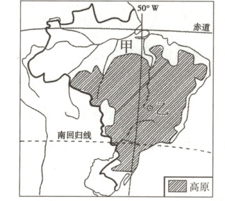 13.C 14.B 15.C [解析]甲地位于亚马孙平原,乙地位于巴西高原,造成两地气温差异的主要影响因素是地形地势;乙为巴西首都巴西利亚;巴西大部分位于热带,适宜种植热带经济作物;该国地势南高北低(或:东南高,西北低)。
