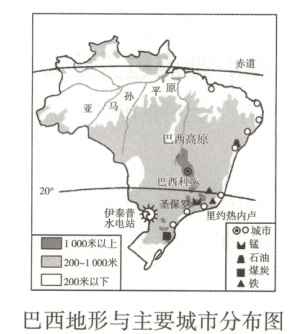 19.A [解析]巴西已形成较完整的工业体系,经济不以出口初级农矿产品为主,亚马孙平原地势低平,气候过于湿热,人口稀疏,巴西人种复杂,城市人口占比较大。20.D