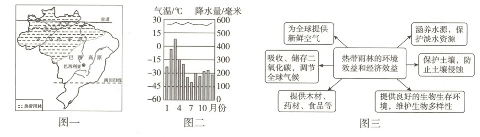 材料二 亚马孙热带雨林的环境效益和经济效益示意图(图三)。