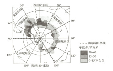 4. 南极磷虾平均密度最低的海域扇区是( )