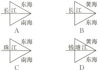 3.(中考·白城)读长江三角洲地区的地理位置示意图。有人把此图比喻为“弓”和“箭”。下列关于“弓”“箭”“箭头”与地区的对应,正确的是( )