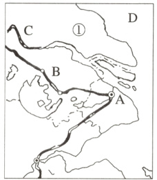 (4)与城市A相邻的省①为________省;该省东部海域D是______海。