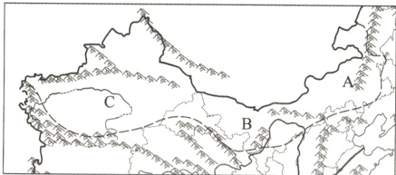A. 沿A→B→C方向,植被依次是草原—荒漠草原—荒漠