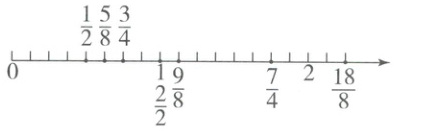 $\frac{1}{2}$ $\frac{2}{2}$ $\frac{3}{4}$ $\frac{7}{4}$ $\frac{5}{8}$ $\frac{9}{8}$ $\frac{18}{8}$