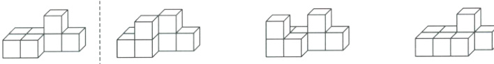 4. 在左下图中的几何体上添加一个同样的小正方体,使得从左面看到的图形是