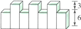 5. 笑笑用积木搭成的模型如右下图(单位:cm),每块积木的底面都是边长为3 cm的正方形。这个模型的体积是多少立方厘米?