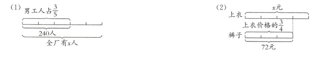 (1)$\frac{3}{5}x = 240$ $x = 400$ (2)$\frac{3}{4}x = 72$ $x = 96$