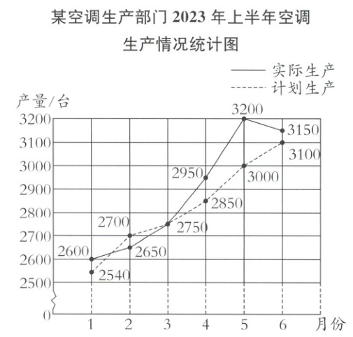 2. 某空调生产部门2023年上半年空调生产情况如下图。