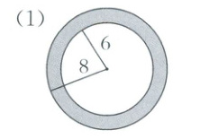 (1)$3.14×(8^{2}-6^{2})=87.92$(平方厘米)