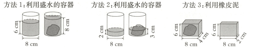 4. 辨思维 开放题 三名同学用了3种方法测量土豆的体积,方法( )不能正确测量出土豆的体积。(π取3)(1分)