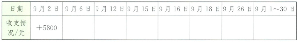 9月2日爸爸发工资5800元。 9月6日水、电、煤气支出500元。