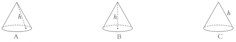 3. 下列选项中,线段h表示圆锥的高的图形是( )。