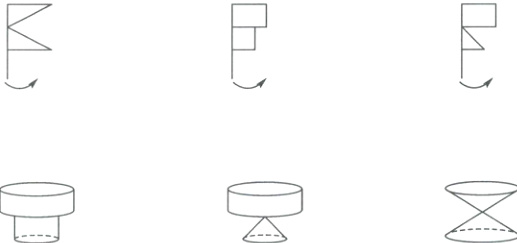 1. 想一想,连一连,转动后会形成什么样的立体图形?
