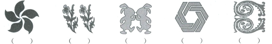 1. 下图是生活中一些美丽的图案。它们分别是如何由相应的基本图形得到的?填一填。