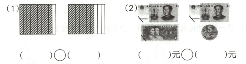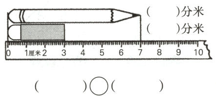 1. 铅笔和橡皮擦各长多少分米?在括号里填上合适的小数,再比较这两个小数的大小。