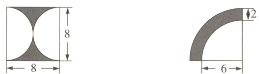 8×8 - 3.14×(8÷2)² = 13.76(cm²) 3.14×[(6 + 2)² - 6²]÷4 = 21.98(cm²)