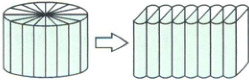 (5)如下图,把一个圆柱平均分成若干等份,拼成一个近似的长方体,长方体的宽是4分米,高是6分米,长方体的长是( )分米,圆柱的体积是( )立方分米。