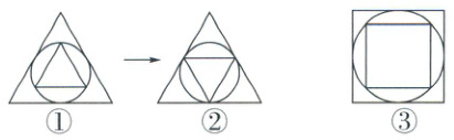 5. 小明借助旋转的方法探索图形之间的面积关系。他将图①中的小三角形绕它的中心旋转得到图②,发现小三角形的面积是大三角形的$\frac{(\ \ \ \ \ )}{(\ \ \ \ \ )}$。用这种方法,图③中小正方形的面积是大正方形的$\frac{(\ \ \ \ \ )}{(\ \ \ \ \ )}$。