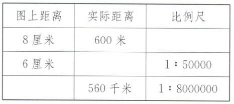 (5)在比例尺是1∶6000000的地图上,量得甲、乙两地之间的距离是8厘米,甲、乙两地之间的实际距离是( )千米;乙、丙两地的实际距离是240千米,在这幅地图上的距离是( )厘米。