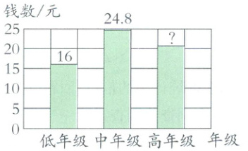 [提示]由题目中的图可知中年级人数占总人数的25%,用800×25%求得中年级总人数,再乘24.8求得中年级总捐款钱数;同理,用800×35%×16求得低年级总捐款钱数,再用中年级总捐款钱数减去低年级总捐款钱数求出中年级比低年级多捐款多少元。