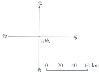 5. 某勘探队在A城南偏西50°60 km处发现了稀有金属矿。请你在平面图上确定金属矿的位置。