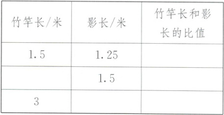 (2)佳航在操场上插了几根长短不同的竹竿,在同一时间里测量竹竿长和相应的影长,请把表格填写完整。