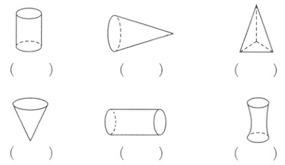 1. 下面的几何体中,是圆柱的在括号里画“〇”,是圆锥的在括号里画“△”。