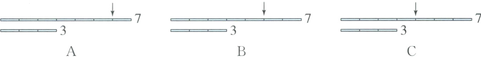 2. 小明想用两根铁丝围一个三角形,如右图所示。他想弯折其中一根铁丝,然后把两根铁丝首尾相接围成三角形,箭头所指的是小明想要折铁丝的位置。( )方法可以围成三角形。(单位:厘米)