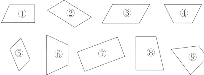 1. 下面图形中,哪些是平行四边形?哪些是梯形?