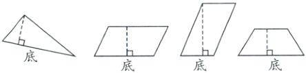 (部分画法不唯一)[提示]本题考查了平行四边形、梯形与三角形高的画法。根据底和高的定义规范画图即可。