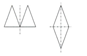 5. 用两个同样的等腰三角形摆成只有1条对称轴的图形,怎样摆?如果摆成有2条对称轴的图形呢?画出示意图。