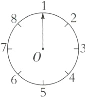 (1)把指针从1绕点O顺时针旋转45°到( )。