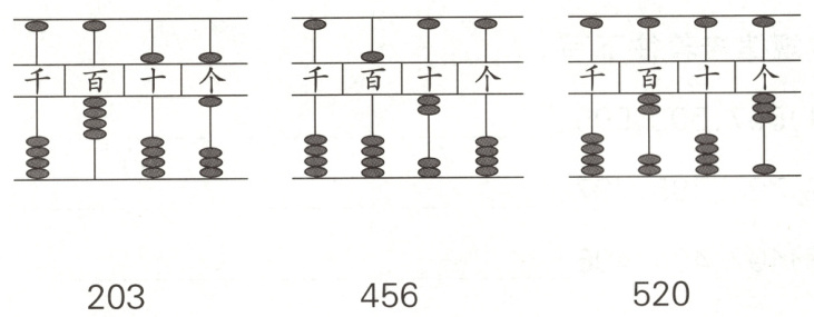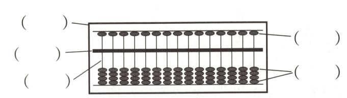1. 写出算盘中各部分的名称,并想想记数法则。