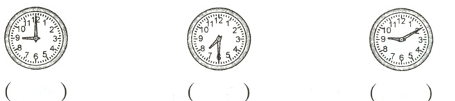 4. 下面钟面上时针与分针形成的角哪个最大,哪个最小?最大的画“√”,最小的画“×”。