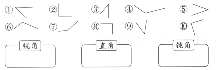 2. 在点子图上分别画出一个直角、一个比直角小的角和一个比直角大的角。