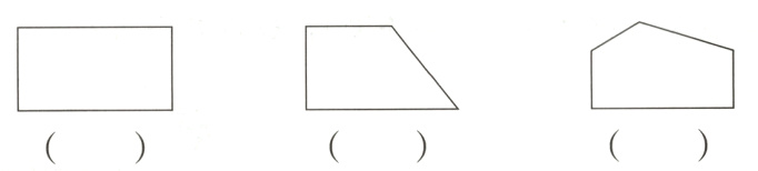 4. 下面各图形中哪几个图形中的四个角都是直角?在括号里画“√”。