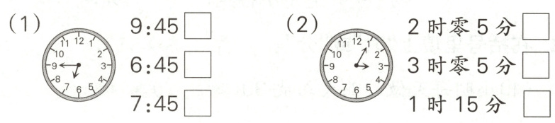 2. 钟面上是几时几分?在正确的答案后面画“√”。