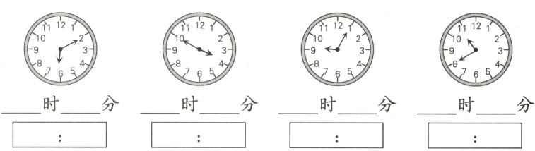 (2)钟面上时针快走到11了,分针指着10,这一时刻是( )时( )分。