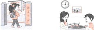 1. get up 2. go to bed 3. go to school 4. have lunch