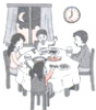 1. get up 2. go to school 3. chicken 4. What time 5. dinner