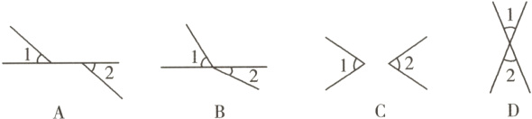 1. 下列各图中,∠1和∠2是对顶角的是( )