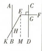 如图,$AB// CD$,$EF\perp CD$于点$G$,$EK$交$AB$于点$H$,当$\angle BHK = 30^{\circ}$时,求$\angle KEF$的度数。