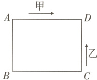7. (淄博张店期末)如图,已知长方形ABCD的宽AB = 6,长AD = 8,甲、乙两动点分别从该长方形的顶点A,C同时沿长方形的边开始移动,甲点按顺时针方向环行,乙点按逆时针方向环行,若甲点与乙点的速度比为3∶4,则它们第2026次相遇时,A,B,C,D这四个顶点中距离甲点(或乙点)最近的是顶点________.