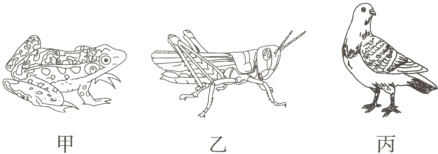 B [解析]甲青蛙、乙蝗虫是变温动物,丙家鸽是恒温动物,B错误。