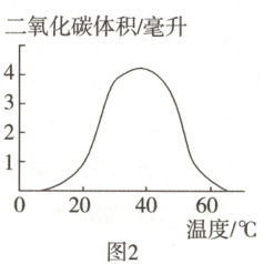 (3)利用酵母菌发酵制作馒头时,酵母菌分解______,产生二氧化碳使生面团膨胀。图2是温度对二氧化碳产生量的影响,据图分析,用酵母菌制作馒头时要用大约40℃的温水和面,原因是______。